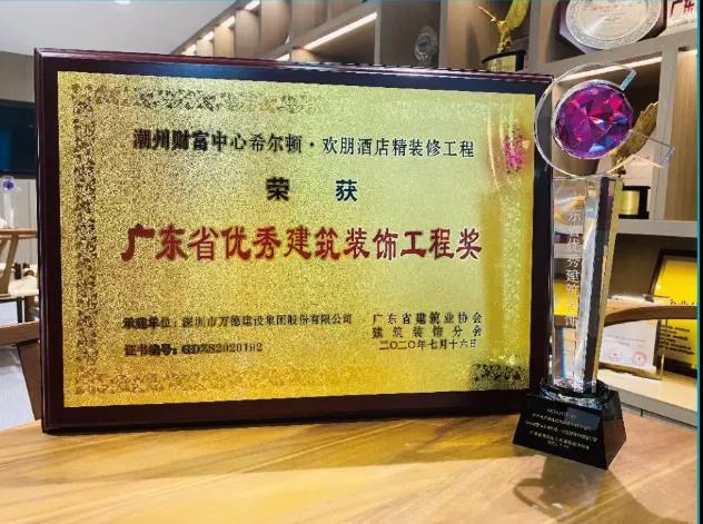 近日,由深圳市萬德建設集團股份有限公司(以下稱“萬德建設集團”)承建的潮州財富中心希爾頓·歡朋酒店、深圳朗瑪峰前灣深港基金小鎮辦公室榮獲2020年廣東省優秀建筑裝飾工程獎。此外,承建的貴陽烏當農商銀行野鴨支行、湖州妙喜精舍度假酒店、深圳大學本原設計研究中心斬獲2019中國建筑裝飾金鷹設計大賽金獎。