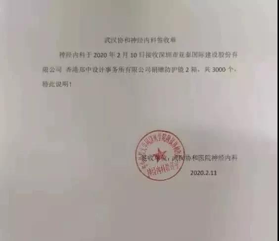 2月7日,深圳市亞泰國際建設股份有限公司(擬更名:鄭中設計)&CCD董事長鄭忠組織公司同事,并協同武漢志愿者、供貨渠道、物流等各方力量,盡最大的努力,以最快的速度為一線抗疫人員送去資源物資。