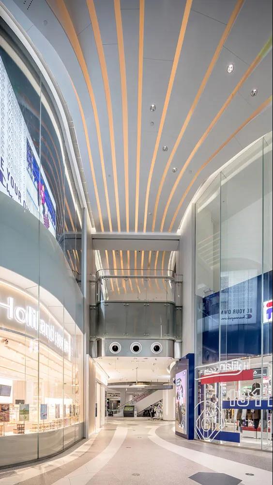 同時(shí)通過(guò)簡(jiǎn)單的改變天花LED燈光的顏色,就能夠改變整個(gè)入口的氛圍,為商場(chǎng)帶來(lái)更多的未來(lái)感和時(shí)尚氣息。