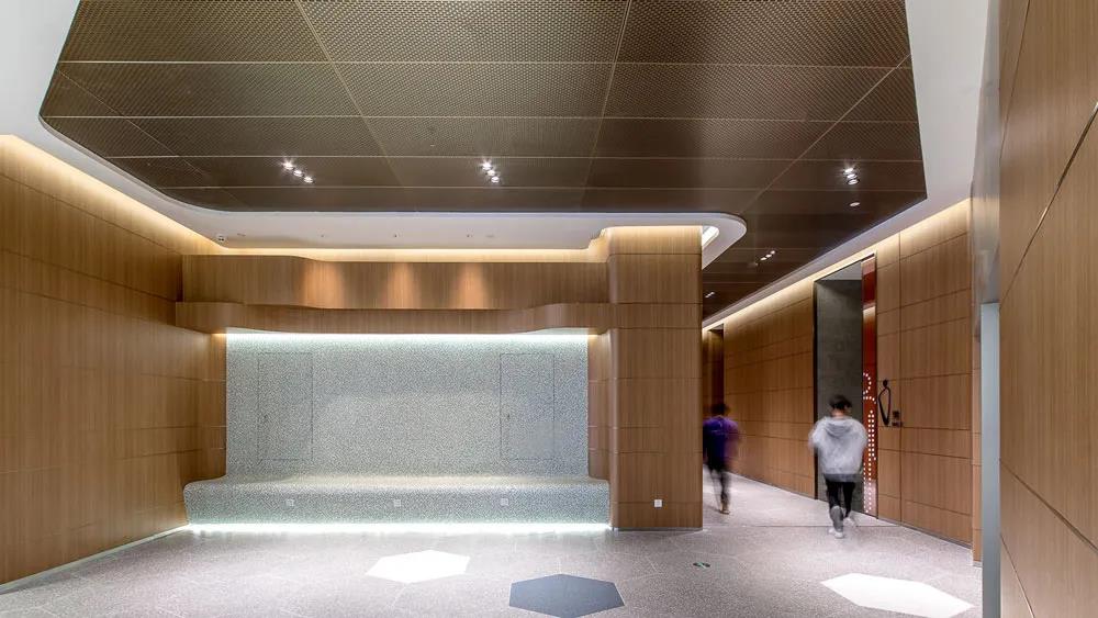 在次要空間中,衛(wèi)生間和電梯廳都延續(xù)了生長(zhǎng)的概念,通過(guò)現(xiàn)代時(shí)尚的弧形邊角處理,形成一種微妙的科技感,局部點(diǎn)綴的色彩,使空間增加了年輕的氛圍。