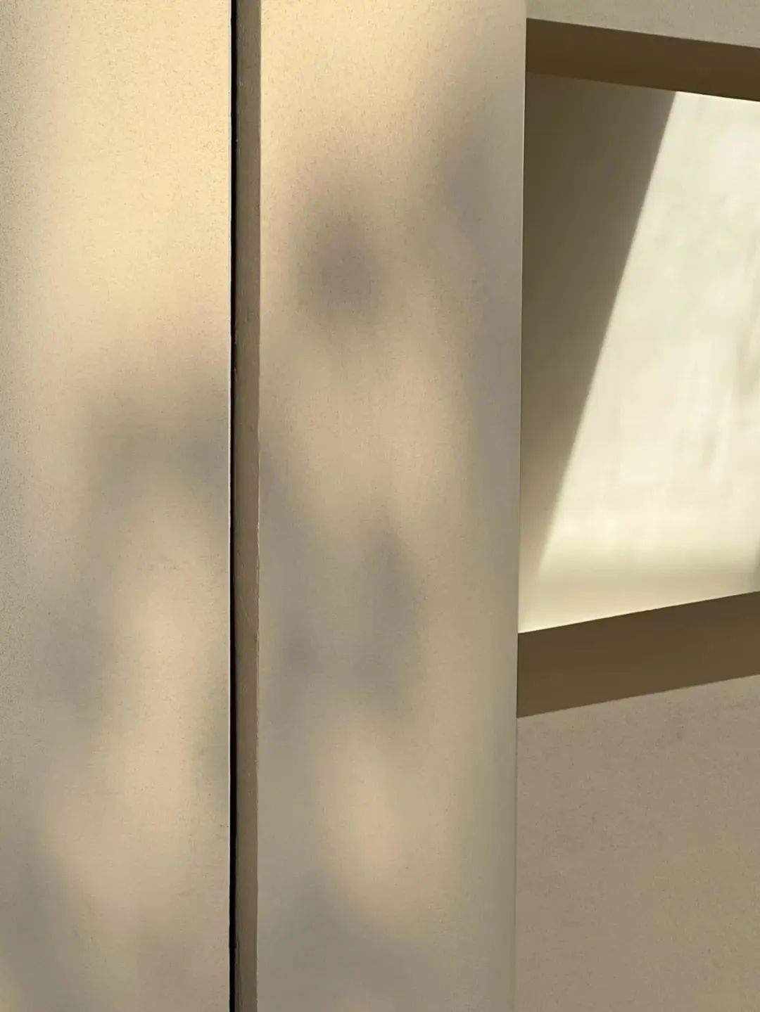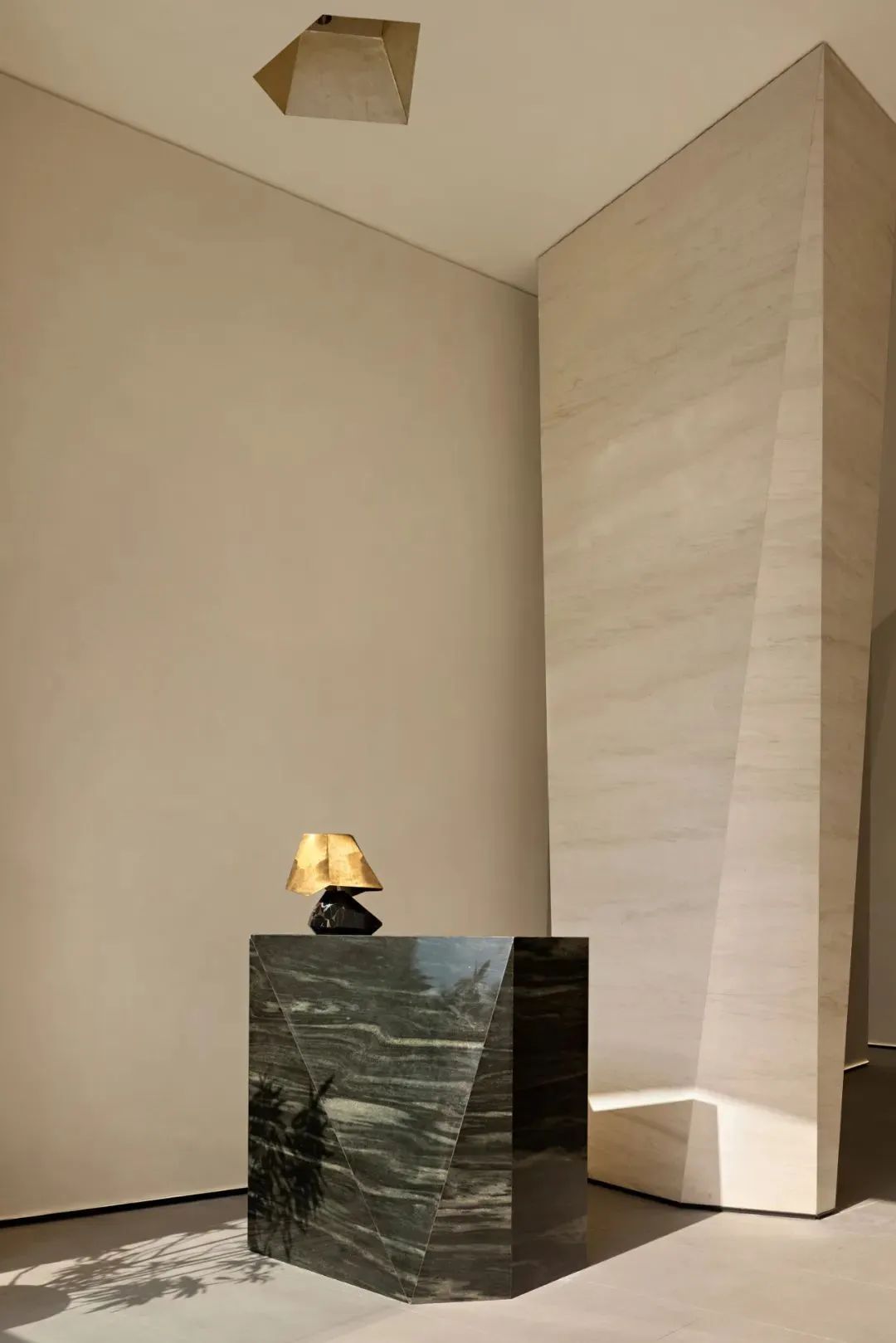 日光沿著一個緩坡下落到空間內部,它沿著斜墻向地面靠近,直到到達空間的地面,穿過墻面上的縫隙游走在空間當中。