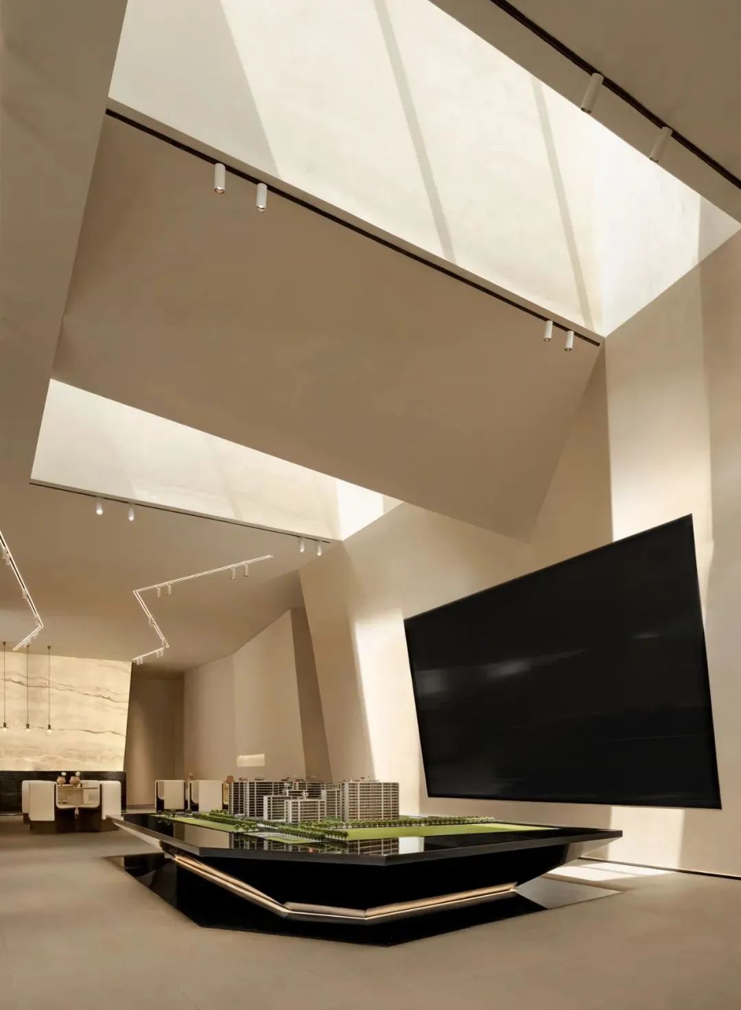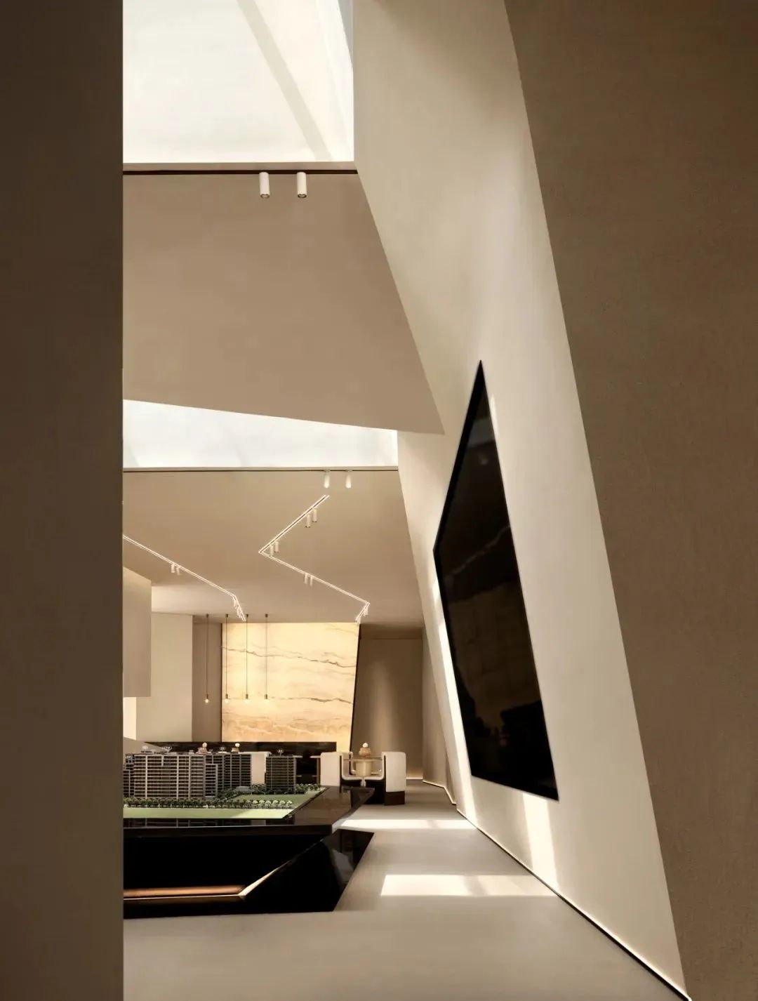 空間是光的容器,兩者相遇空間的情緒便產生變化,也觸動著人的情感。沙盤空間被上方的山谷裂縫中投入的日光所照亮,為觀看與交談創造了一個平靜與引發思考的區域,以及一個可以聚焦的社交聚會點。