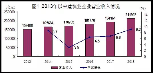 建企營業收入規模再創歷史新高 2018年,全國建筑業企業實現營業收入211992億元,首次突破20萬億元,達到歷史最高水平。其中,主營業務收入209339億元,比2013年增長38.5%,年均增長6.7%。 東中西部建企營收保持較好增長態勢 2018年東部地區建筑業企業實現營業收入111496億元,比2013年增長36.0%,年均增長6.3%; 中部地區實現營業收入50154億元,比2013年增長61.4%,年均增長10.0%; 西部地區實現營業收入43391億元,比2013年增長56.6%,年均增長9.4%; 東北地區實現營業收入6951億元,比2013年下降40.7%,年均下降9.9%。 除東北地區外,其他三個區域建筑業企業營業收入均連續五年保持穩定增長態勢。 從比重看,2018年東部地區建筑業企業實現營業收入占全國比重為52.6%,比2013年下降1.2個百分點;中部地區占比23.7%,提高3.3個百分點;西部地區占比20.5%,提高2.3個百分點;東北地區占比3.3%,下降4.4個百分點。 建企利潤和上交稅金總額 雙雙邁上7000億元新臺階 2018年,全國建筑業企業實現利潤總額7975億元,達到歷史最高水平,比2013年增長31.2%,年均增長5.6%;上繳稅金總額7503億元,增長43.7%,年均增長7.5%。全國建筑業企業實現利稅總額逐年增長,壯大了企業自身實力,為國家財政收入保持穩定增長作出了貢獻。 第四次全國經濟普查結果表明,2013年以來,隨著生產能力、生產規模的快速增長,全國建筑業企業(指具有總承包或專業承包資質的建筑業企業)經營效益保持較好增長態勢,企業利潤和上繳國家利稅穩定增長,為經濟社會持續平穩健康發展作出了積極貢獻。