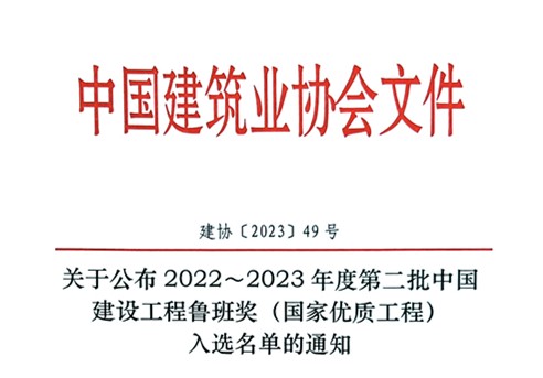 關(guān)于公布2022~2023年度第二批中國(guó)建設(shè)工程魯班獎(jiǎng)(國(guó)家優(yōu)質(zhì)工程)入選名單的通知